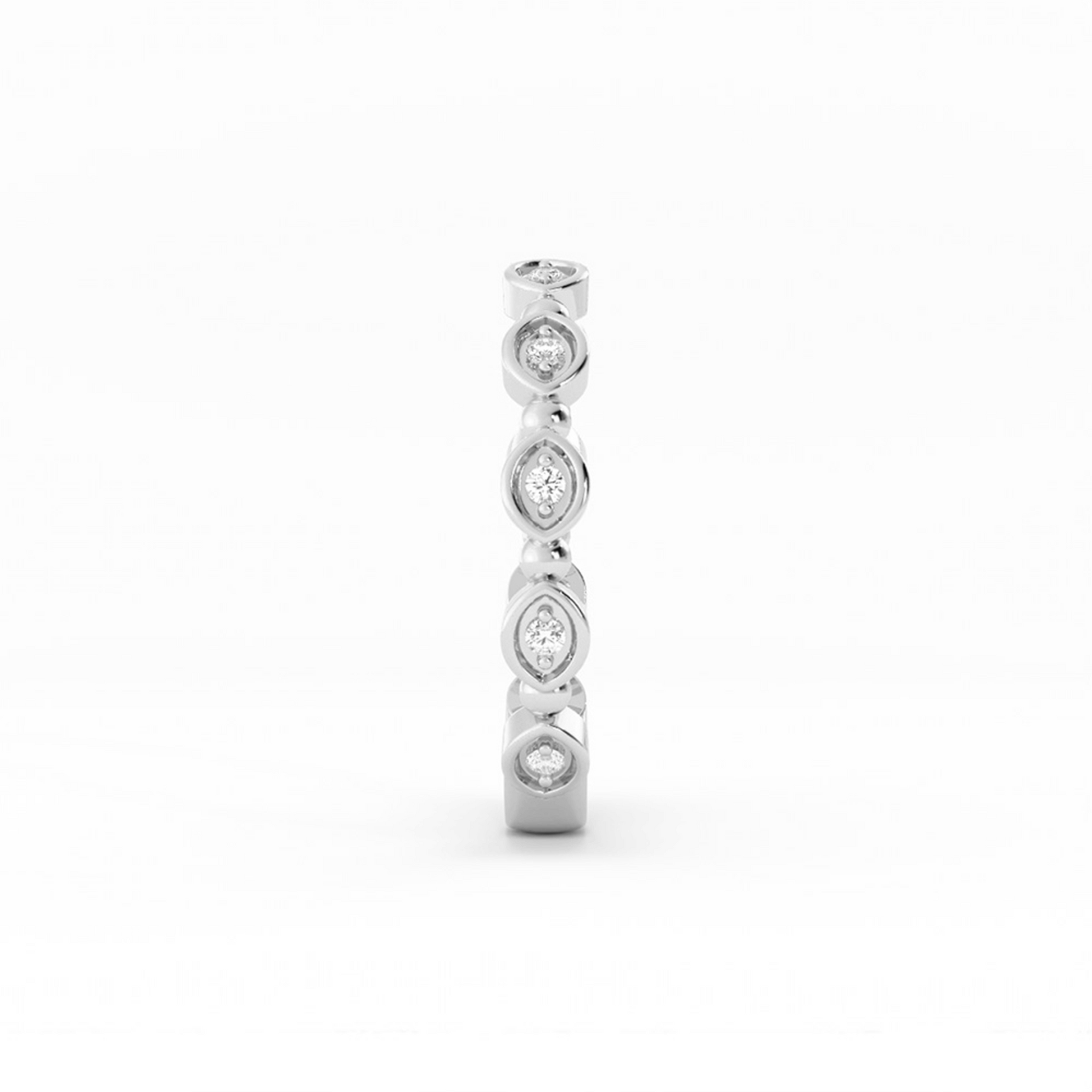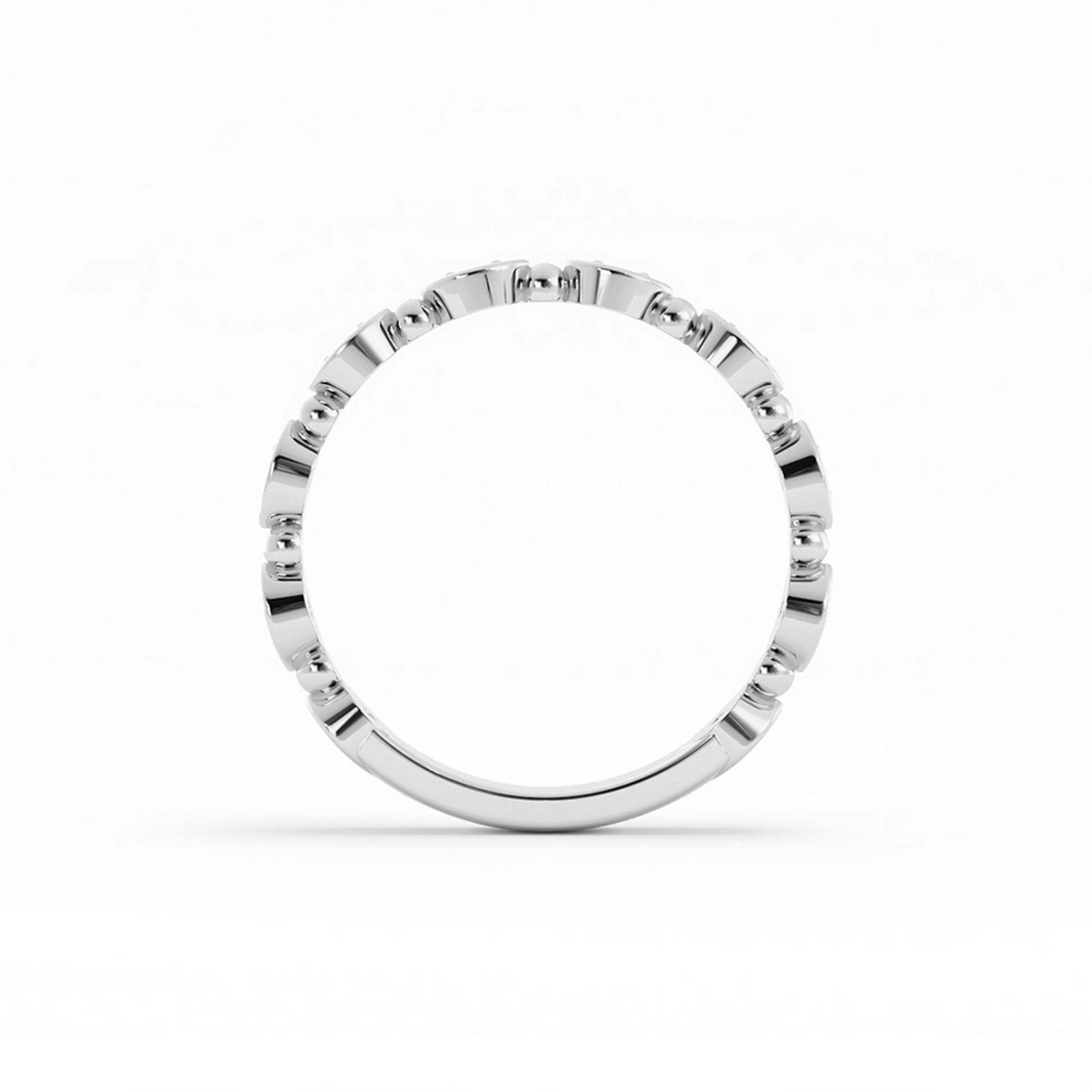 18K White Gold Round Bead and Eyelet Natural Diamond Wedding Band
