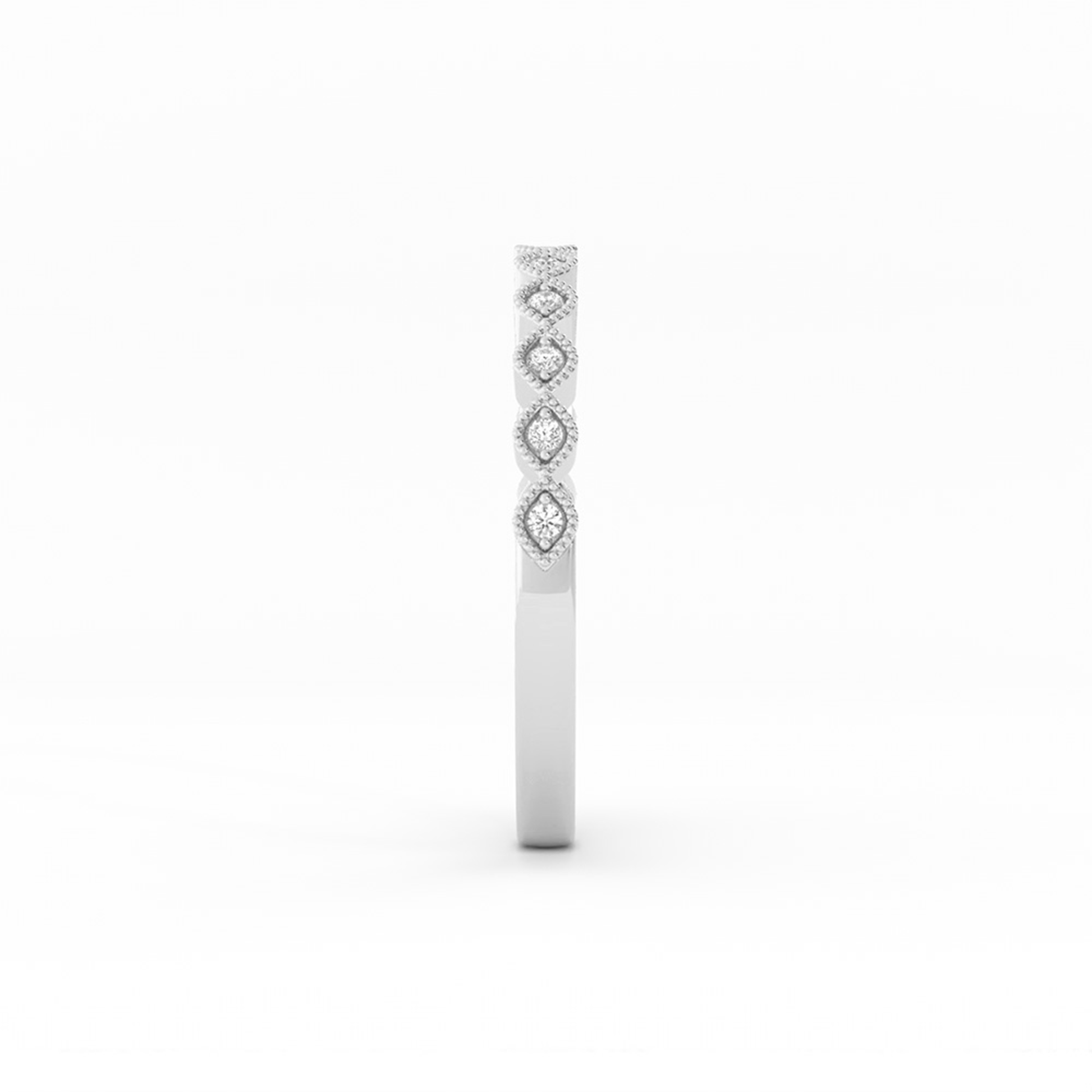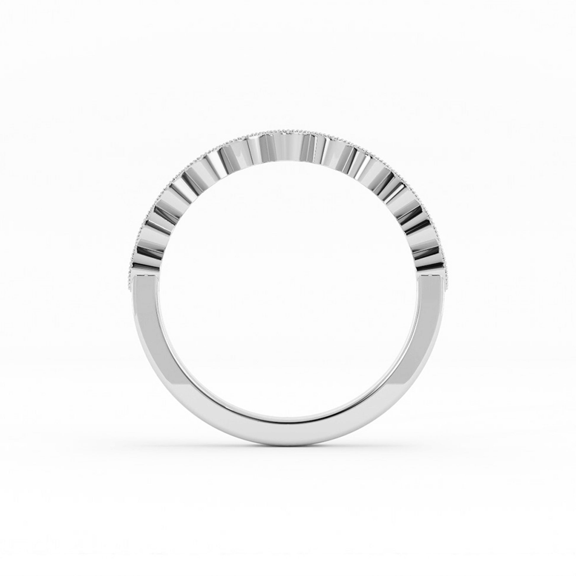 18K White Gold Round Half Shank Eyelet Milgrain Lab Grown Diamond Wedding Band