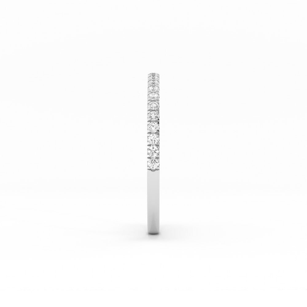 18K White Gold Round Pave Half Shank Lab Grown Diamond Wedding Band