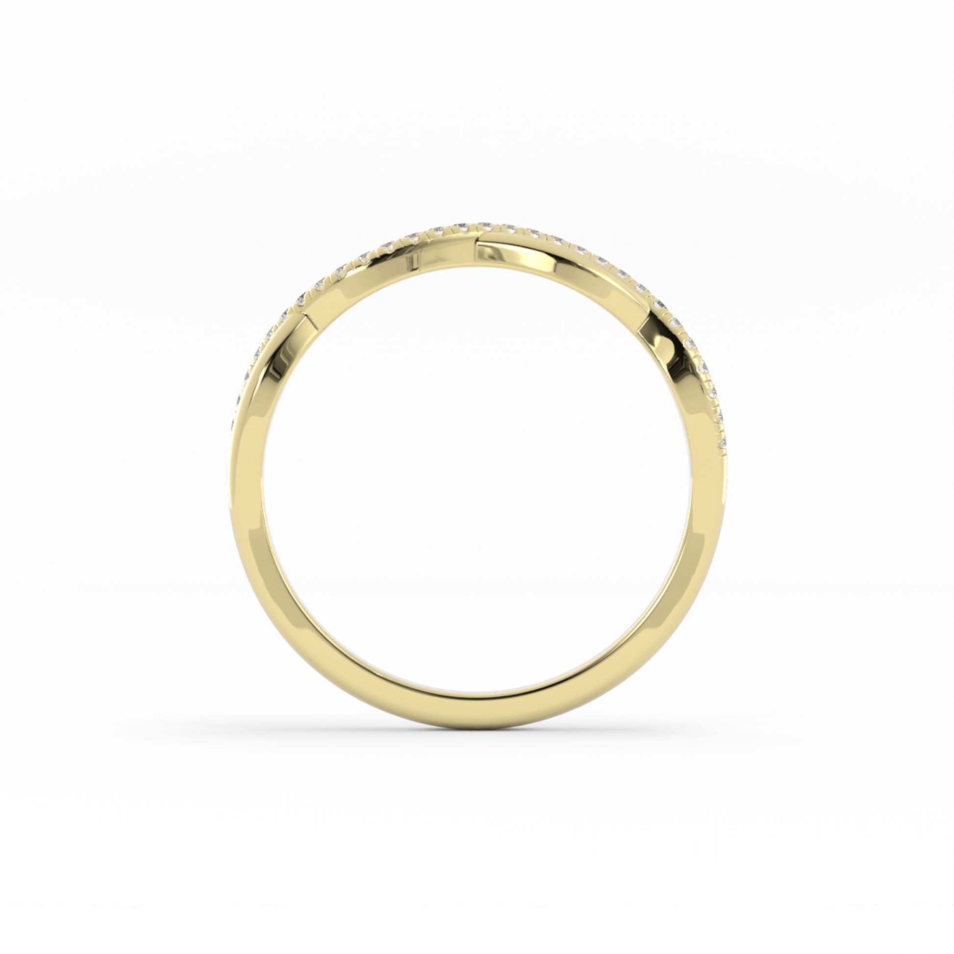 18K Yellow Gold Round Half Shank Wave Pattern Lab Grown Diamond Wedding Band
