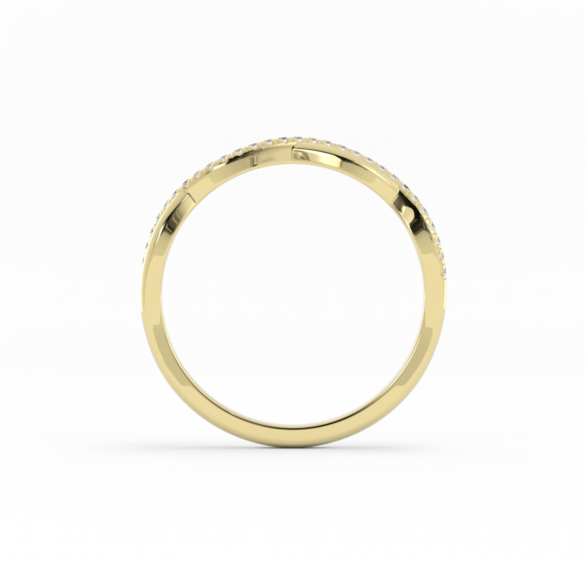 18K Yellow Gold Round Half Shank Wave Pattern Lab Grown Diamond Wedding Band