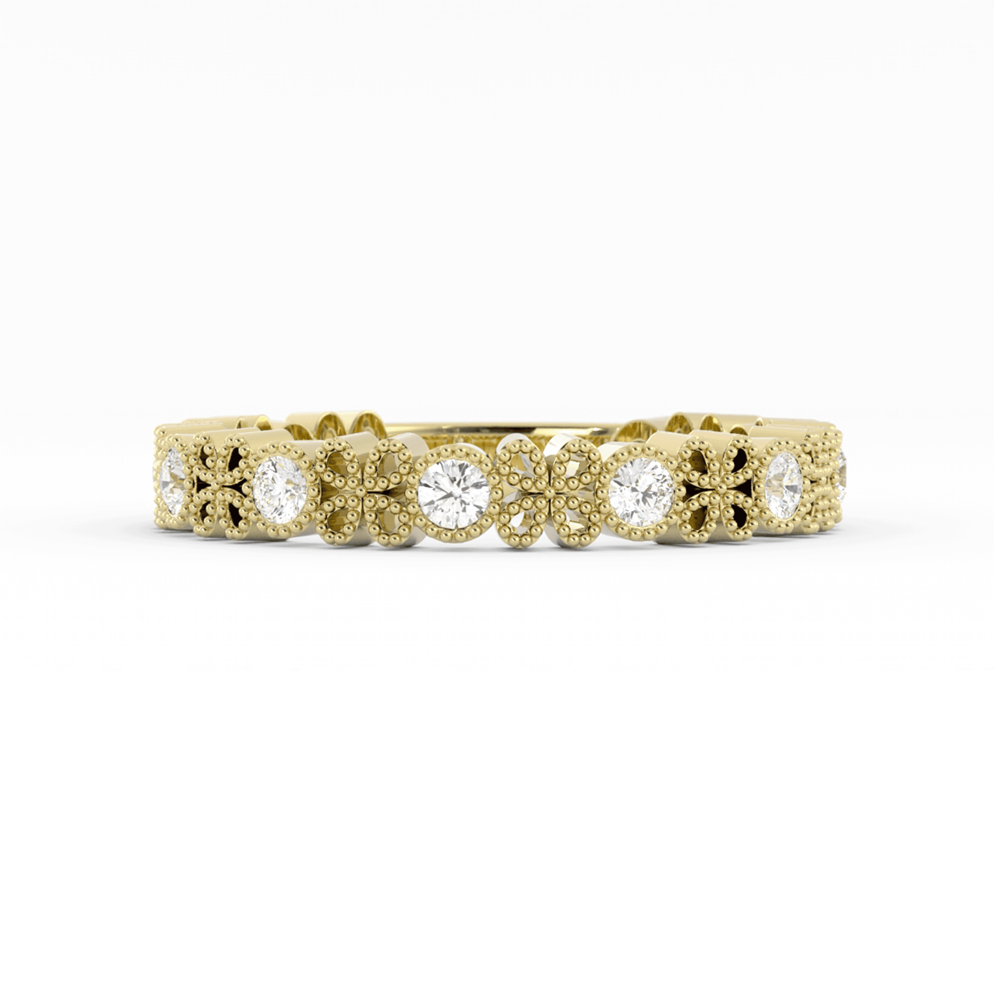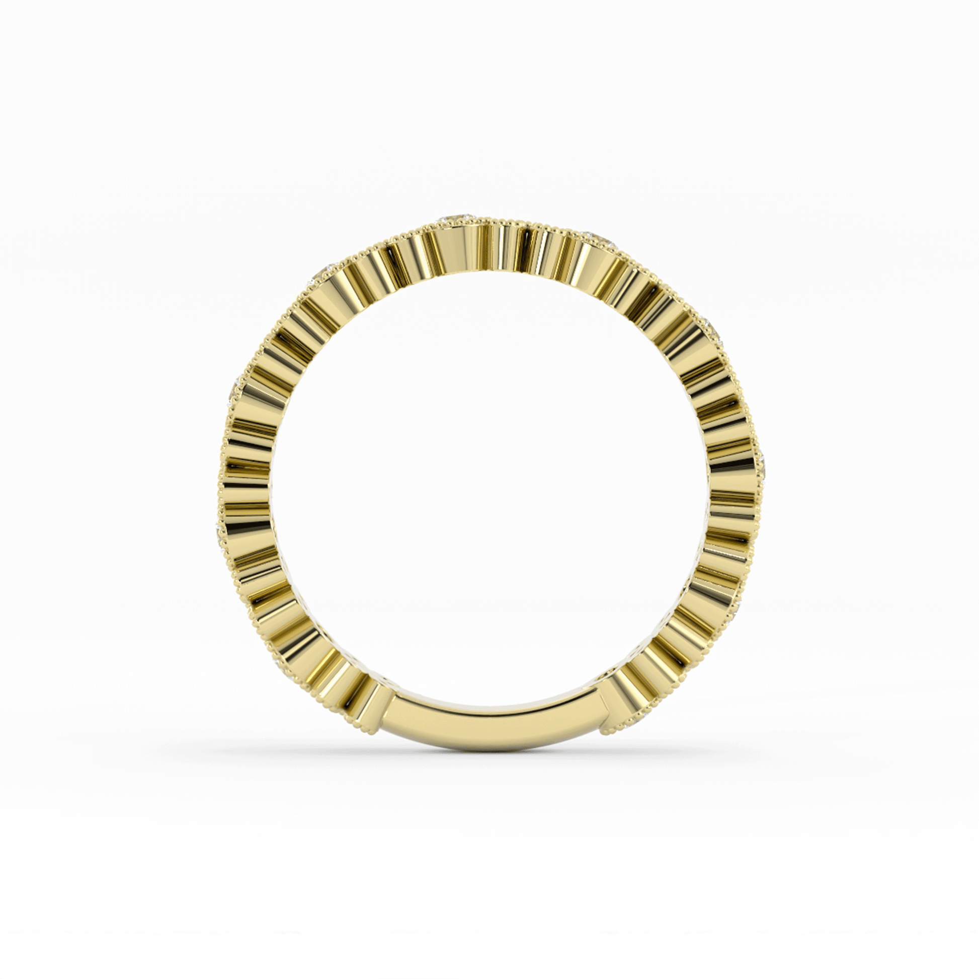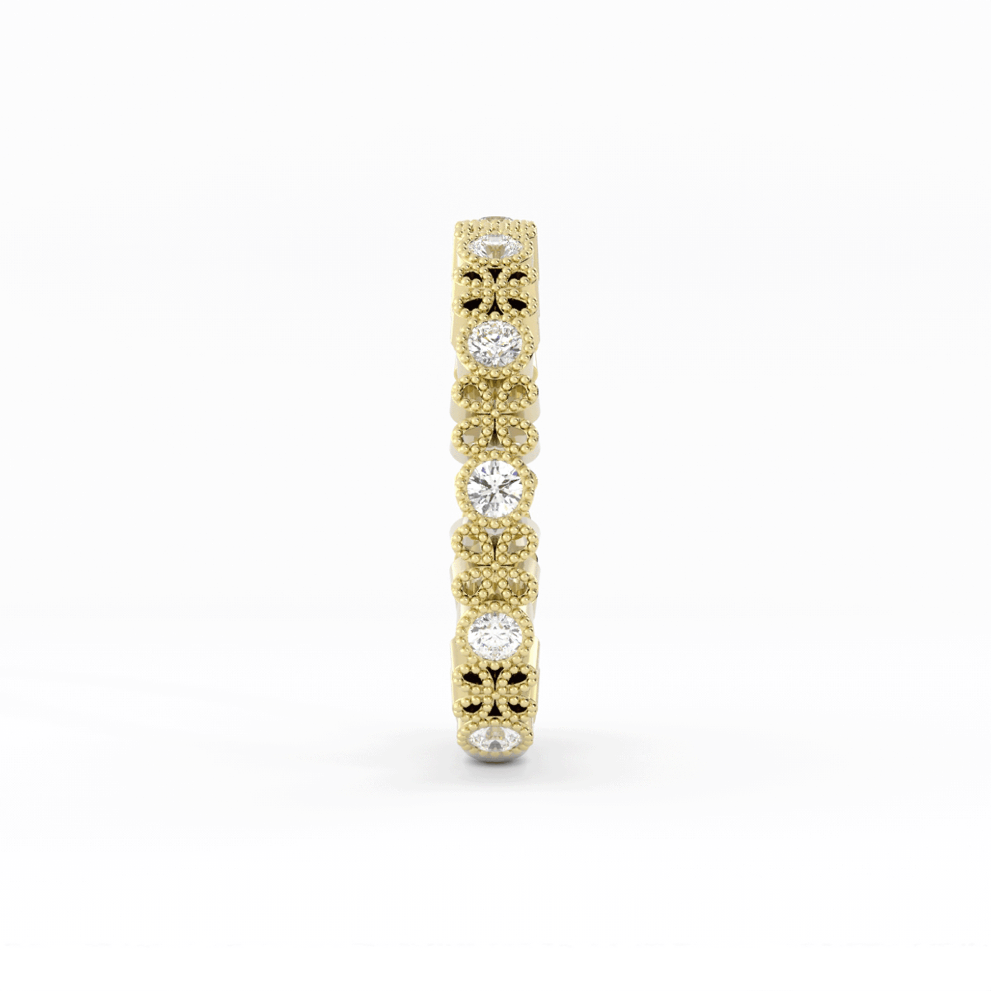 18K Yellow Gold Round Three Quarter Petal and Milgrain Lab Grown Diamond Wedding Band