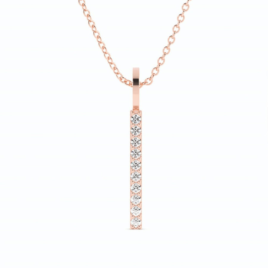 10K Rose Gold Round Lab Grown Diamond Vertical Bar Pendant Necklace