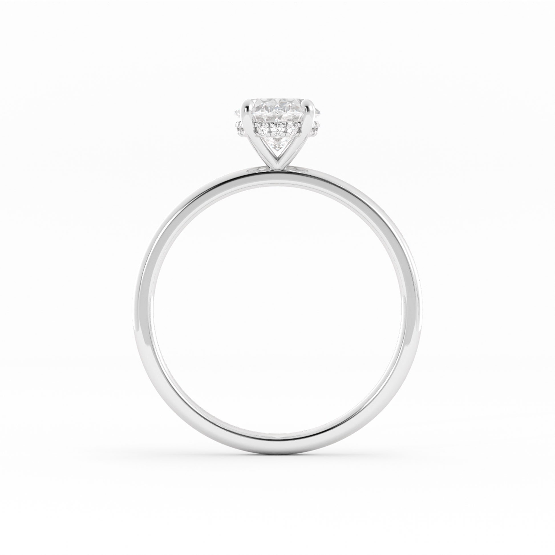 A hidden halo of lab-grown diamonds sits just beneath the center stone, adding a subtle yet radiant touch—an intimate detail that enhances the ring’s elegance from every angle. The Mia ring features a sleek and delicate band, designed for effortless stacking with wedding bands to create a personalized and layered look.