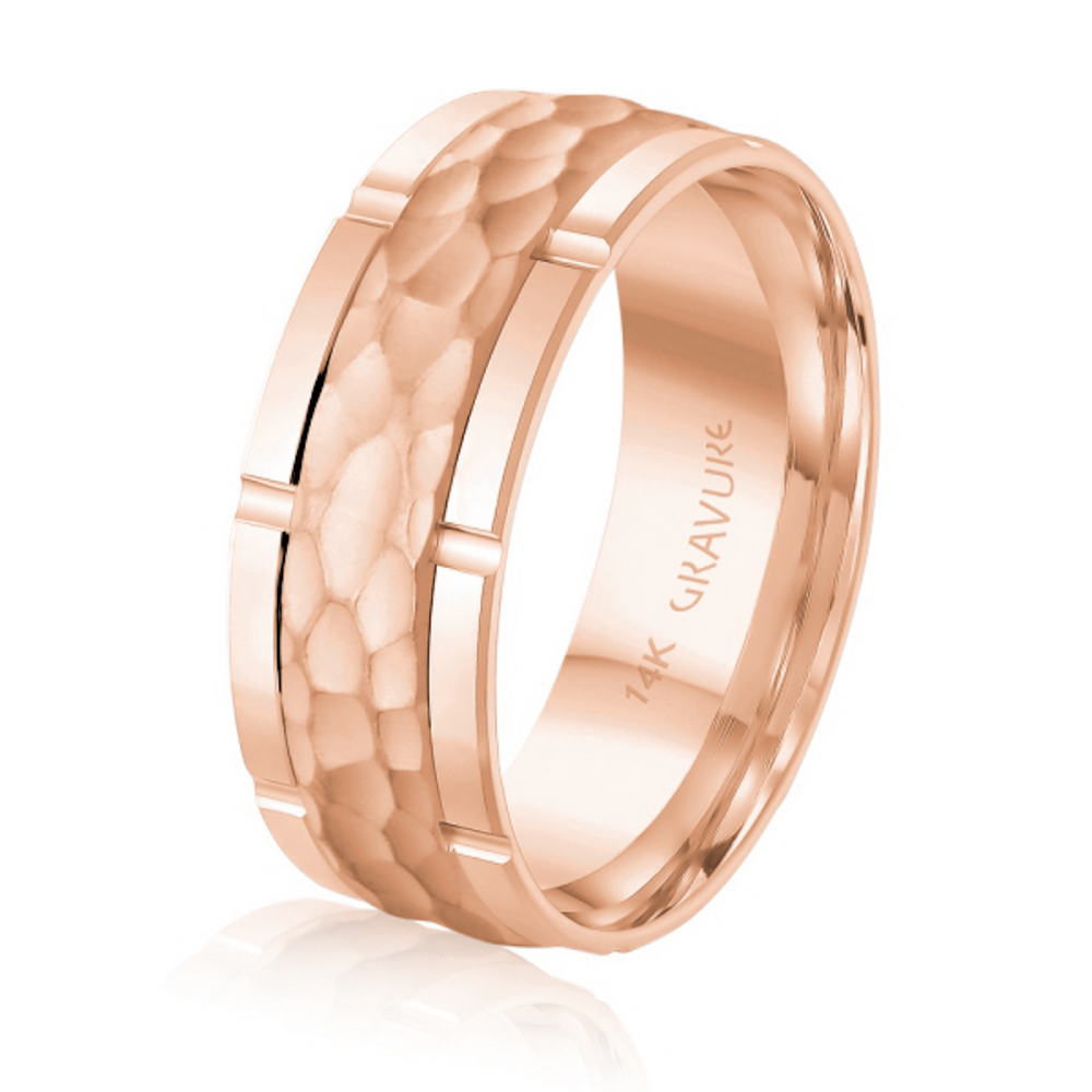Hammered Center with Grooved Edges 14K Rose Gold Ring