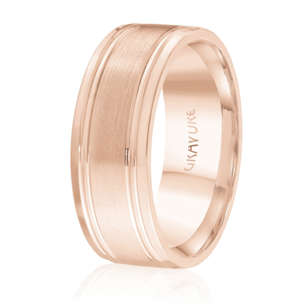 Raised satin center with parallel grooves 14K Rose Gold Ring