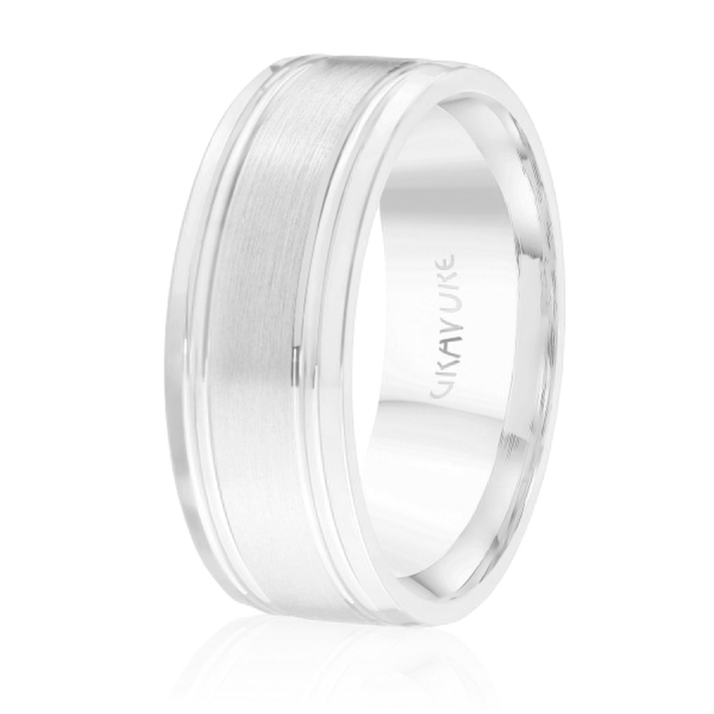 Raised satin center with parallel grooves 18K White Gold Ring