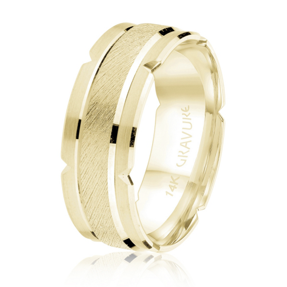 Scratch satin center with triangular edge cutouts 18K Yellow Gold Ring