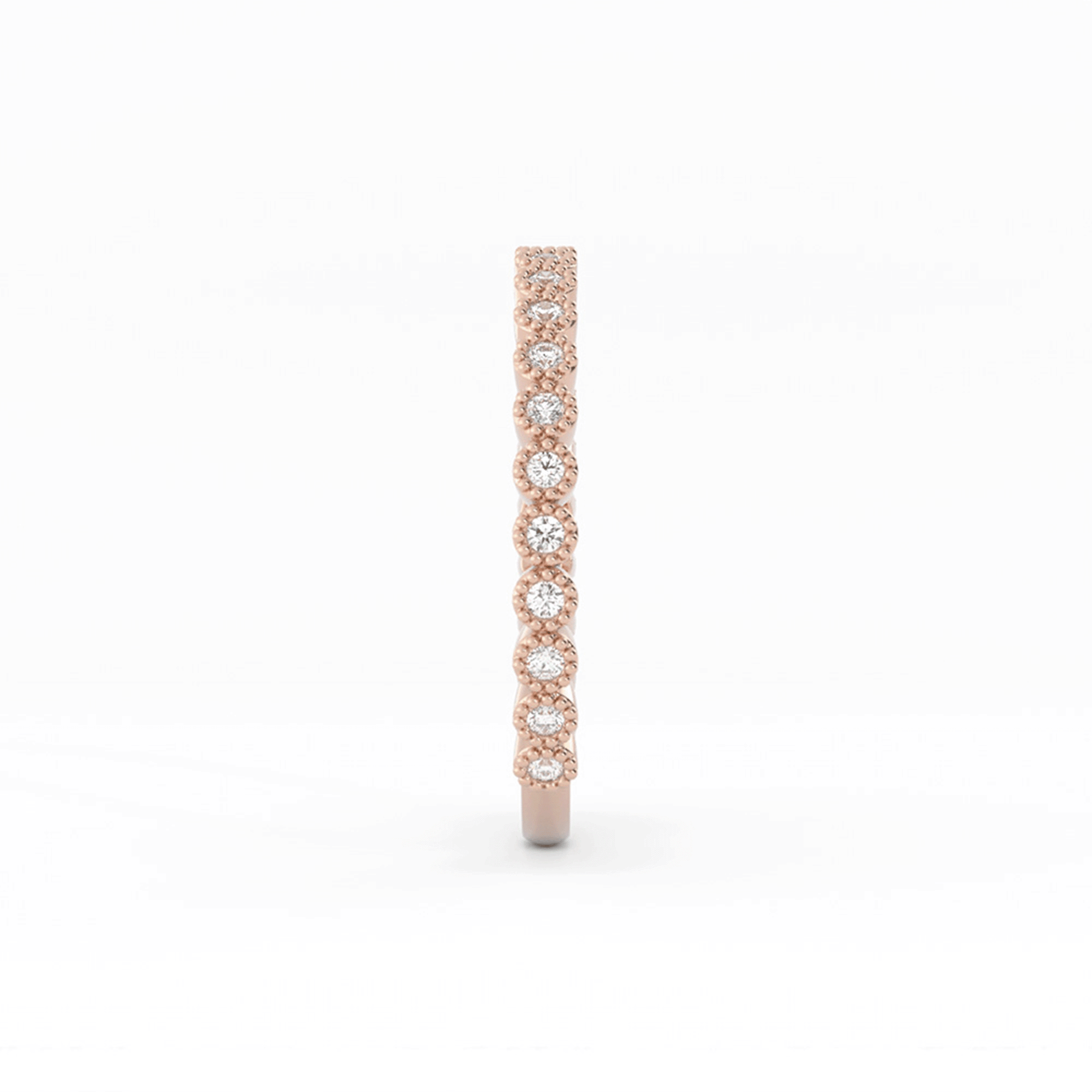 14K Rose Gold Round Three Quarter Milgrain Natural Diamond Wedding Band
