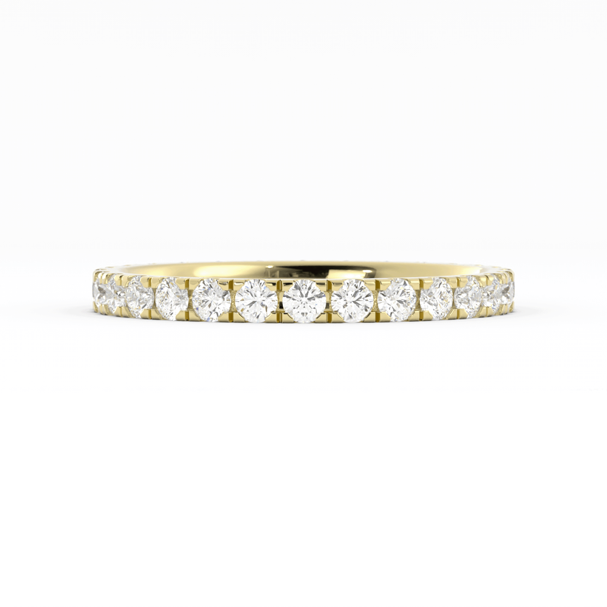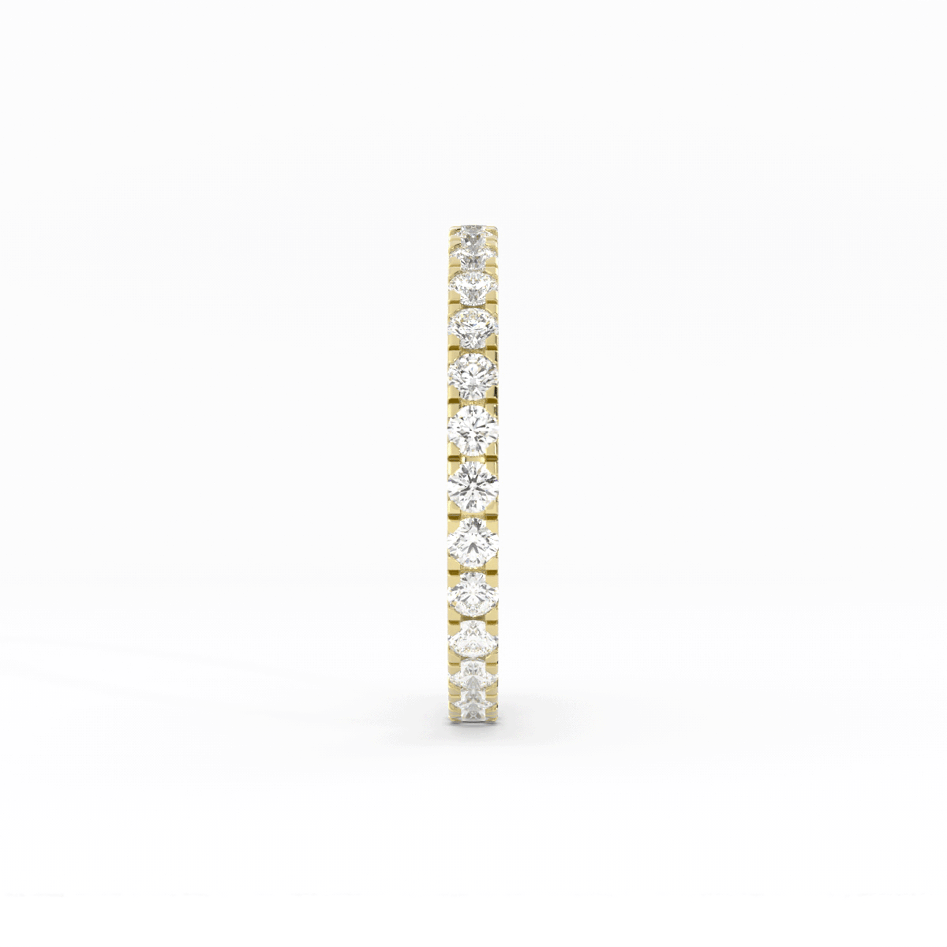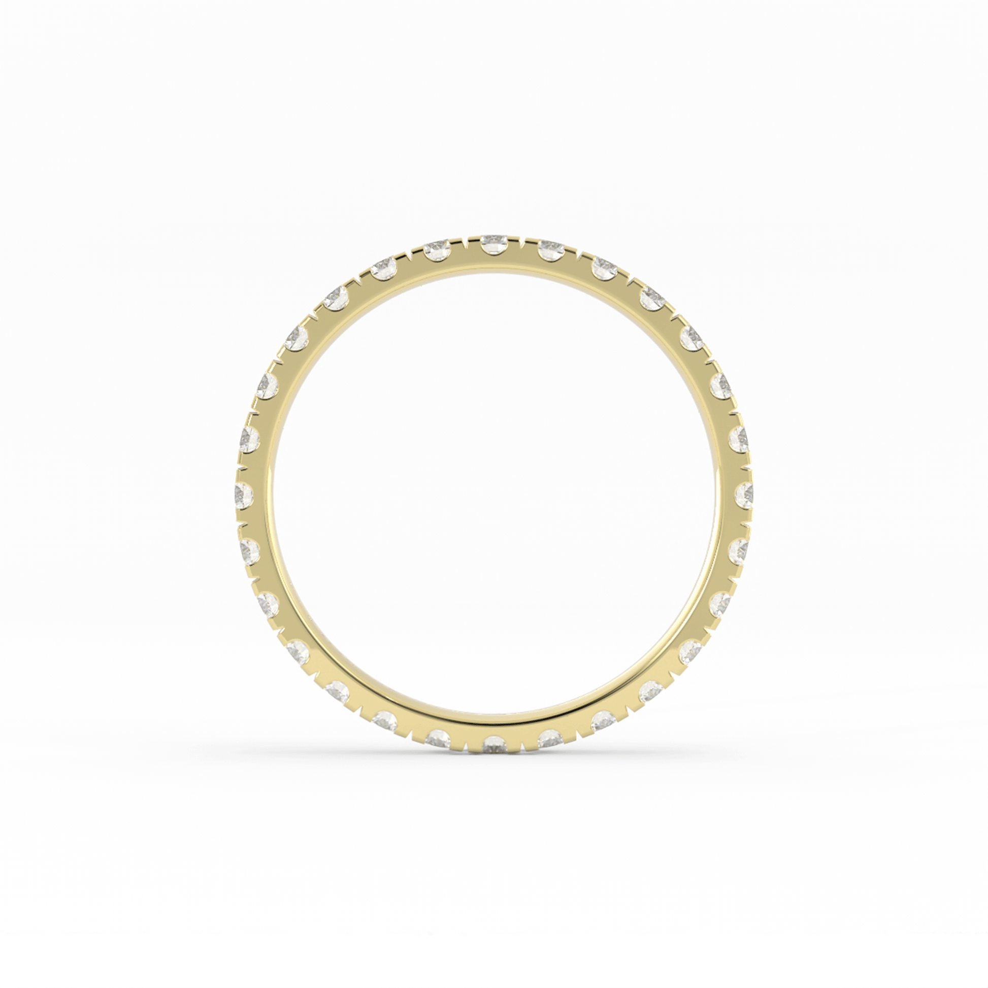 Beautiful and elegant, this gorgeous 14k yellow gold eternity ring features lab-grown diamonds set around the band in a subtle French pave style. Read More Read Less