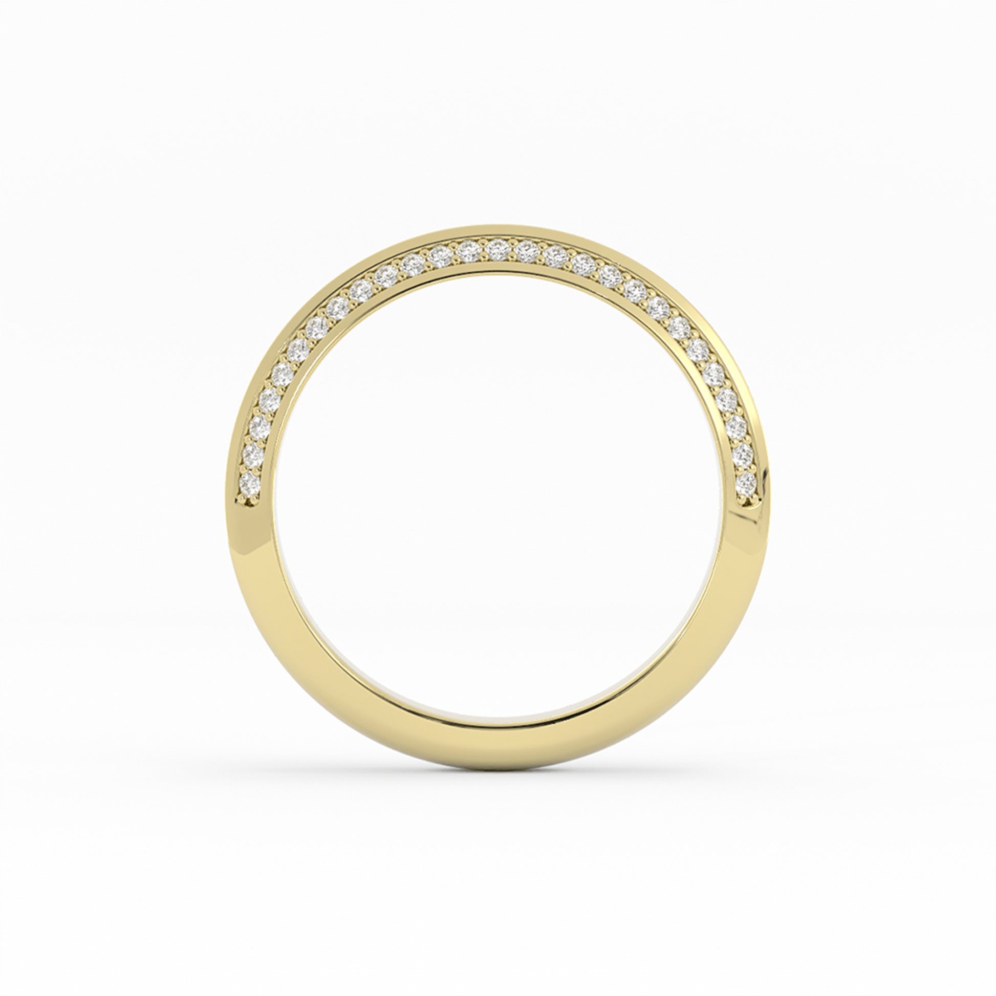 14K Yellow Gold Round Pave Half Shank Lab Grown Diamond 2.4mm Wedding Band