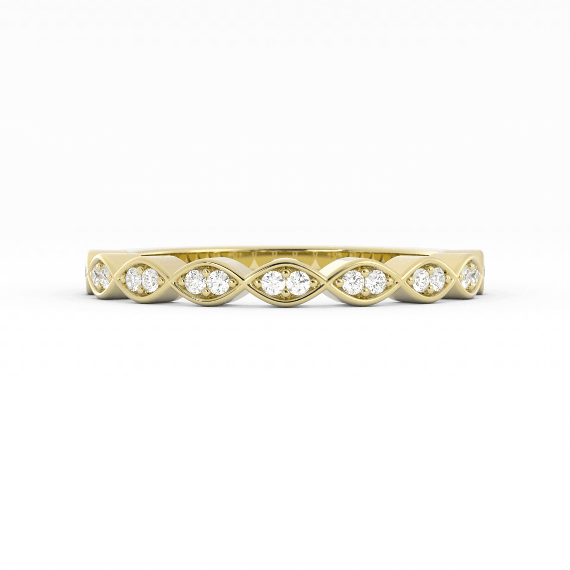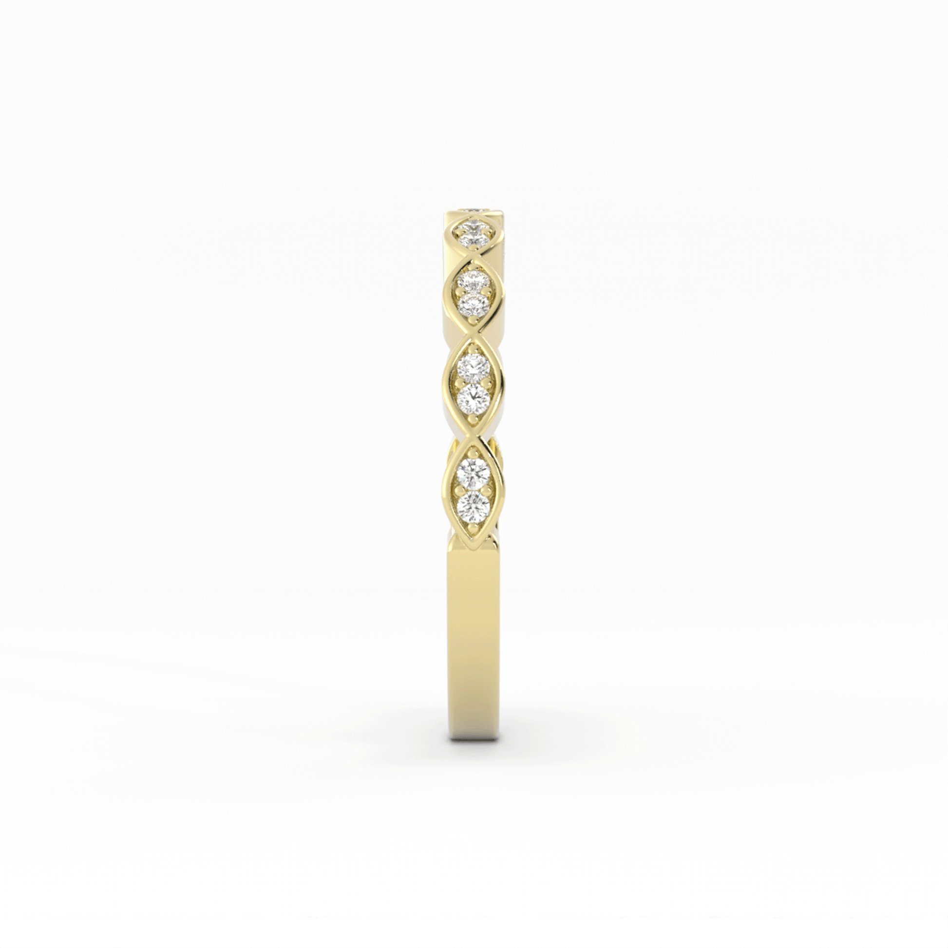 18K Yellow Gold Round Half Shank Eyelet Paired Stone Natural Diamond Wedding Band