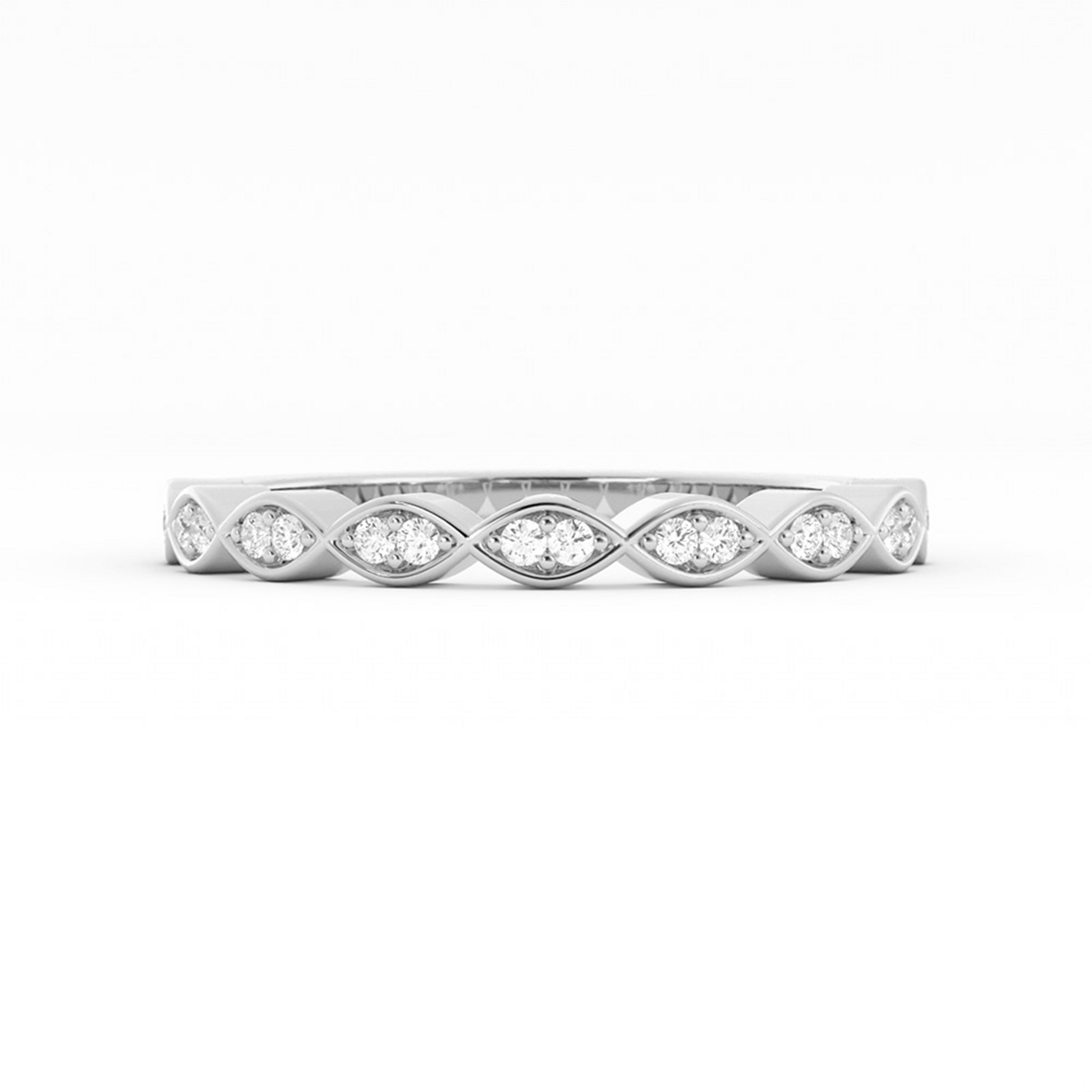 Platinum Round Half Shank Eyelet Paired Stone Lab Grown Diamond Wedding Band