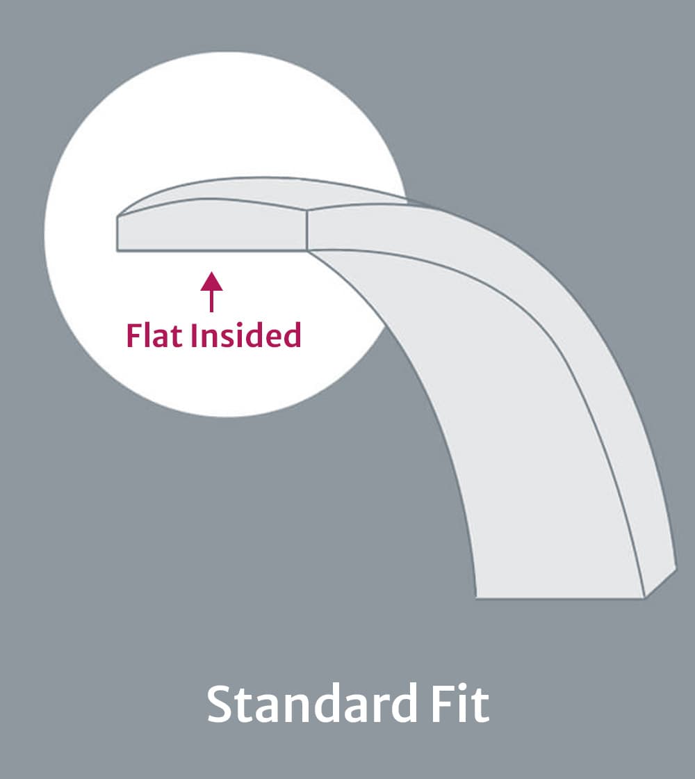 Comfort-fit bands are the most comfortable to wear, but standard fit may still be a good option for your ring. Standard fit offers a flat inner surface and makes sizing a little easier. It also works better with detailed bands, like those on engagement rings.