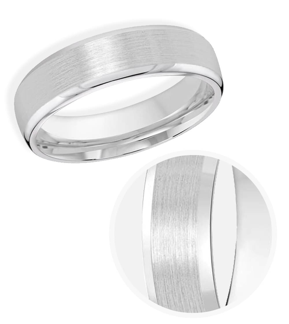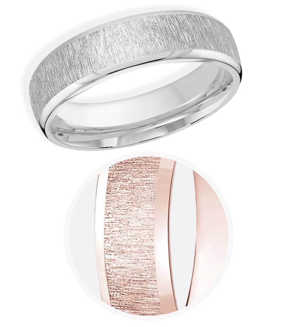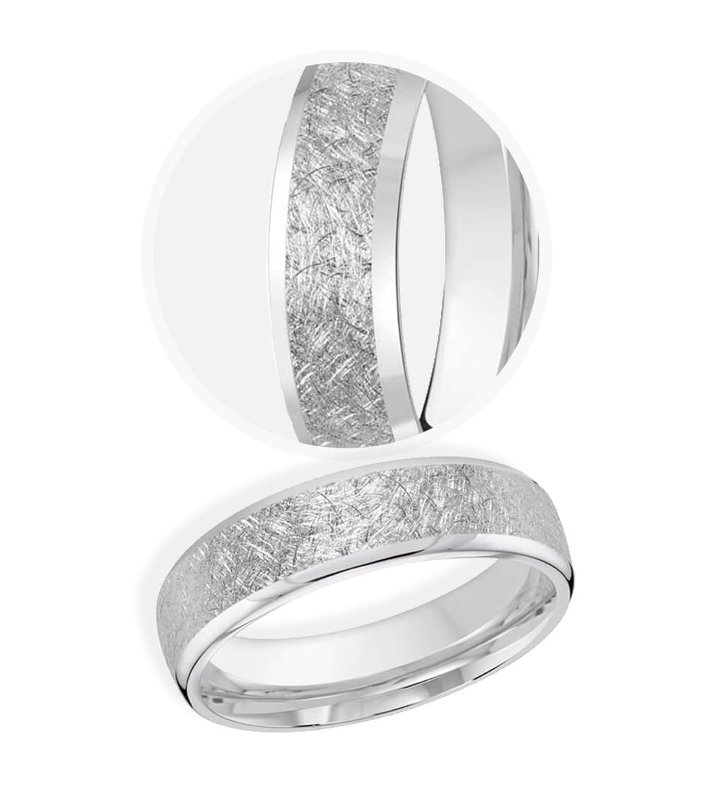 For a natural and edgy look on your wedding band, the vertical brush finish is a great choice. The texture of this finish consists of rough lines that go across the band from one edge to the other. Not only does it offer scratch resistance, but the design also resembles the bark of a tree.