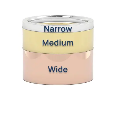 Traditional or Standard fit bands, by contrast, have a flat interior against the finger. They may feel a bit tighter for the same ring size, but some men prefer the snugness and lower profile. We offer both options, but we find the majority of grooms choose comfort-fit rings for the ideal balance of comfort and security. Additionally, consider the width of the band – common widths range from 4mm to 8mm. Wider bands (6-8mm) can make more of a statement and are often chosen by men with larger hands or who want a bold look, whereas narrower bands are subtle and lightweight.