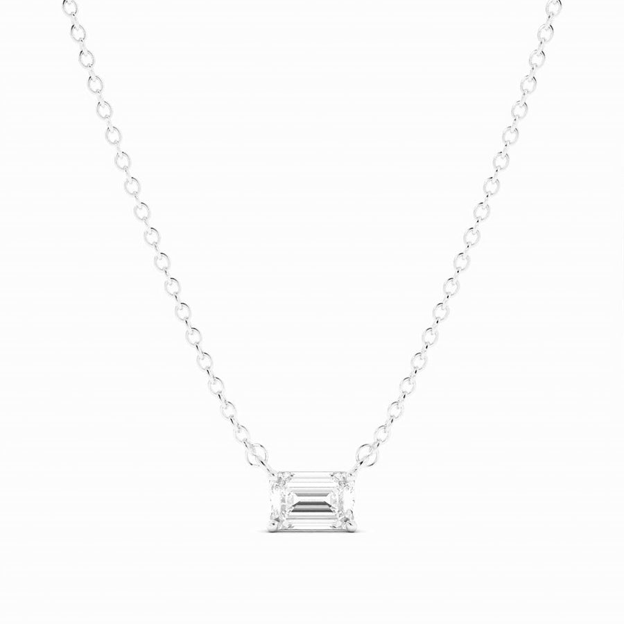 0.5ct Lab Grown Diamond Petite Emerald Cut Solitaire 10K White Gold Necklace