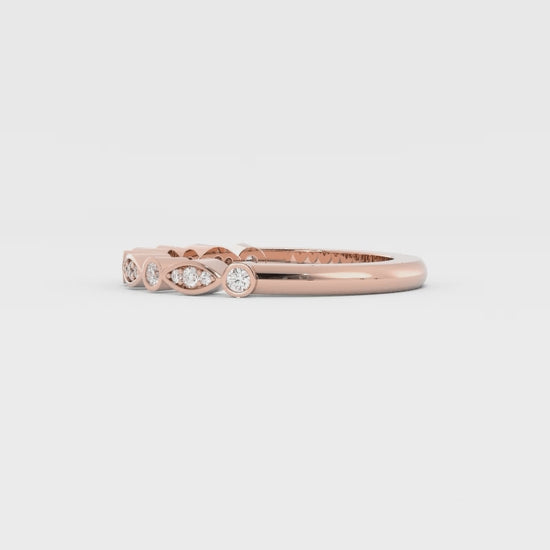 18K Rose Gold Round Three Quarter Alternating Eyelet Lab Grown Diamond Wedding Band