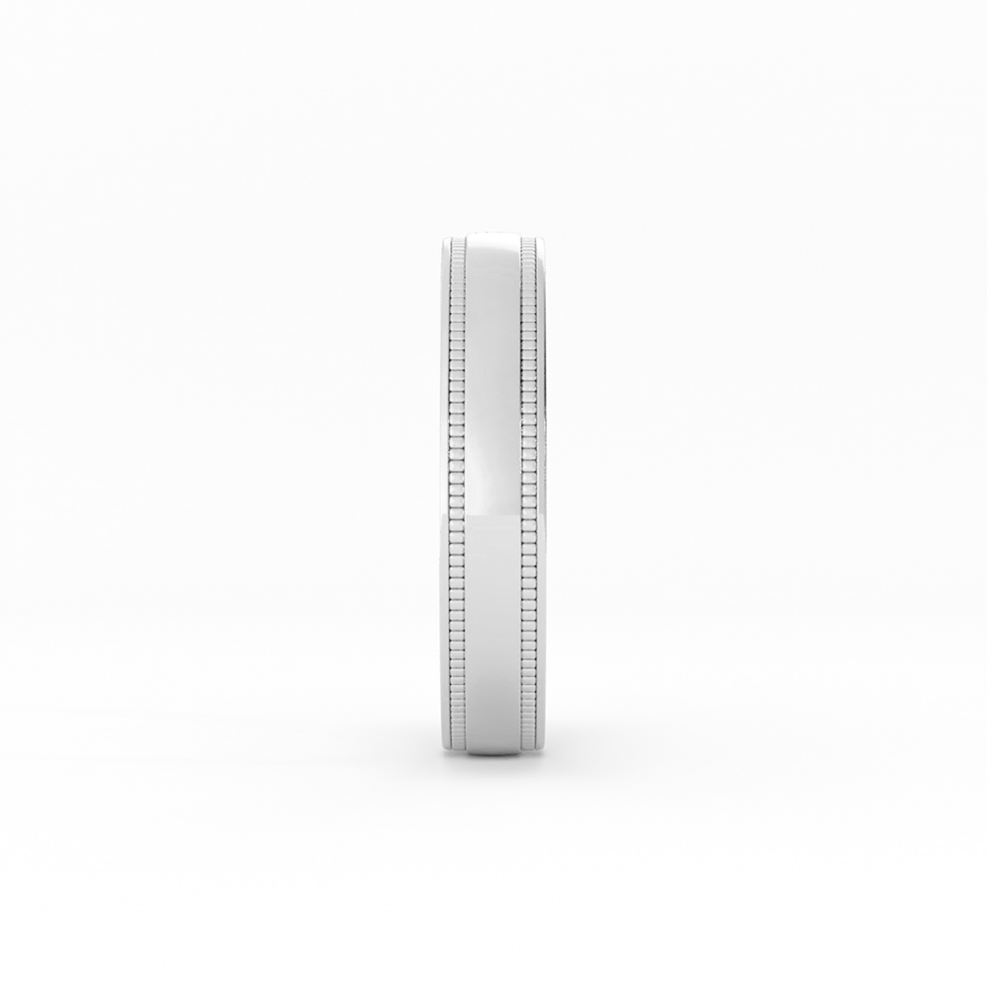 18K White Gold 4mm Milgrain Domed Comfort Fit Wedding Band