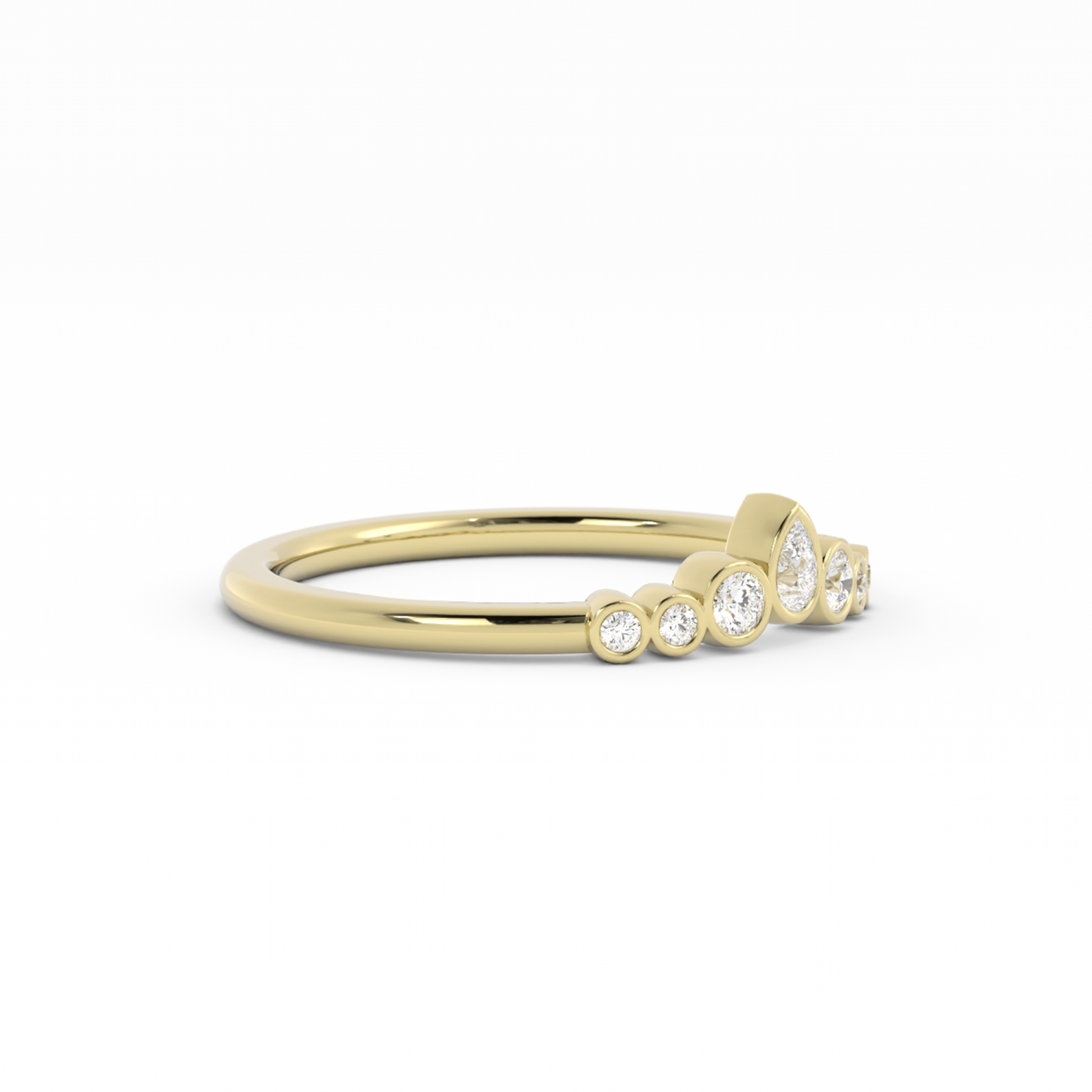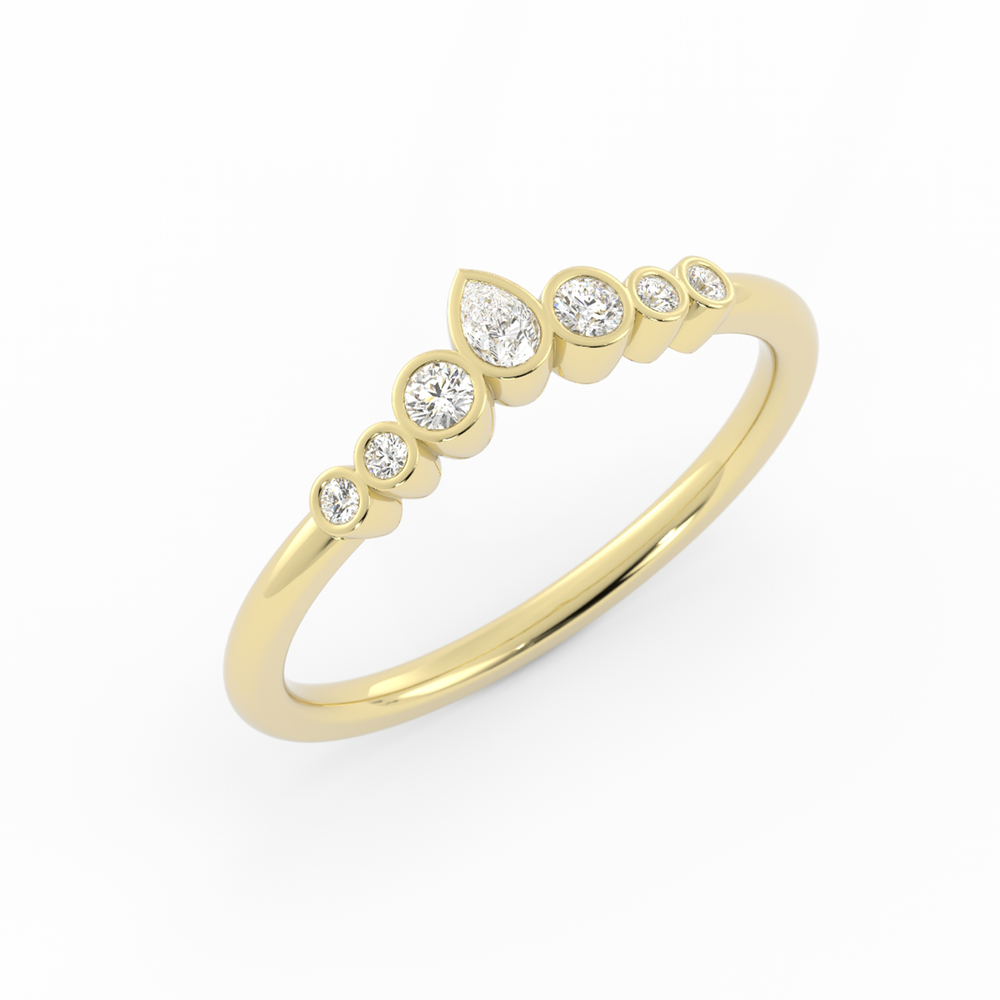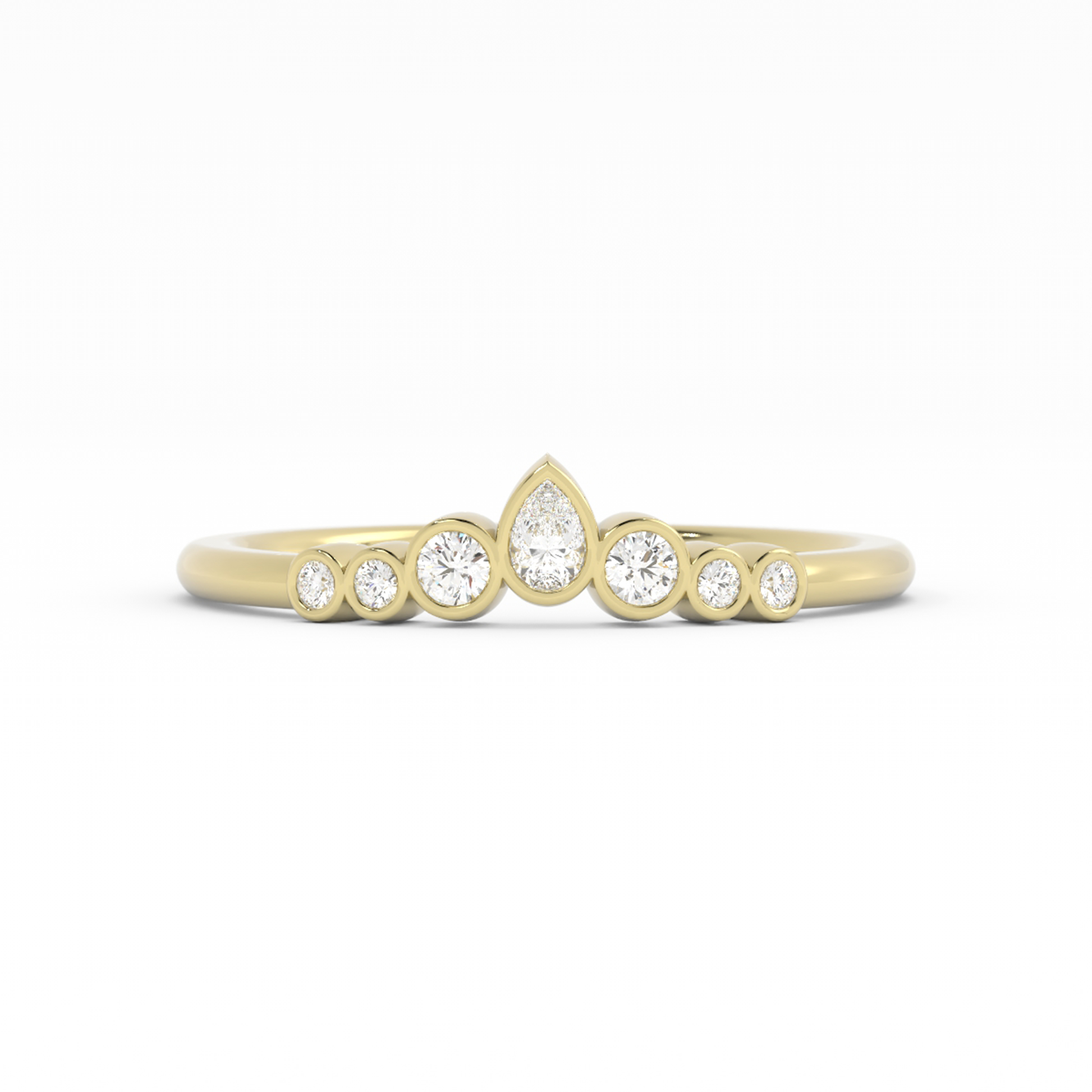 Round diamonds graduate in size to frame a pear-cut stone, creating a striking silhouette. Formed like a sparkling tiara, this ring is the perfect statement piece or a glittering addition to your jewelry collection.